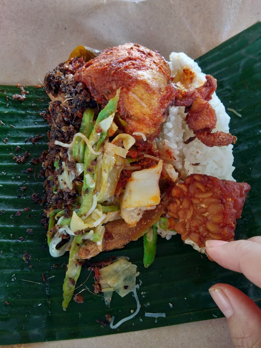 The nasi ambang has chicken and beef rendang options. Tastes great and there are also other food options in the same vicinity.